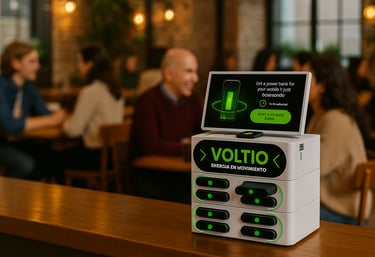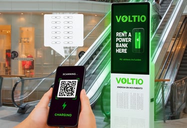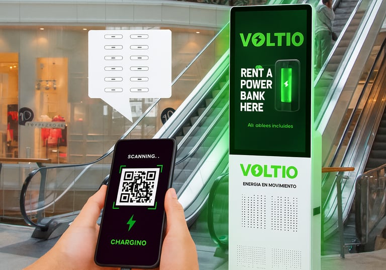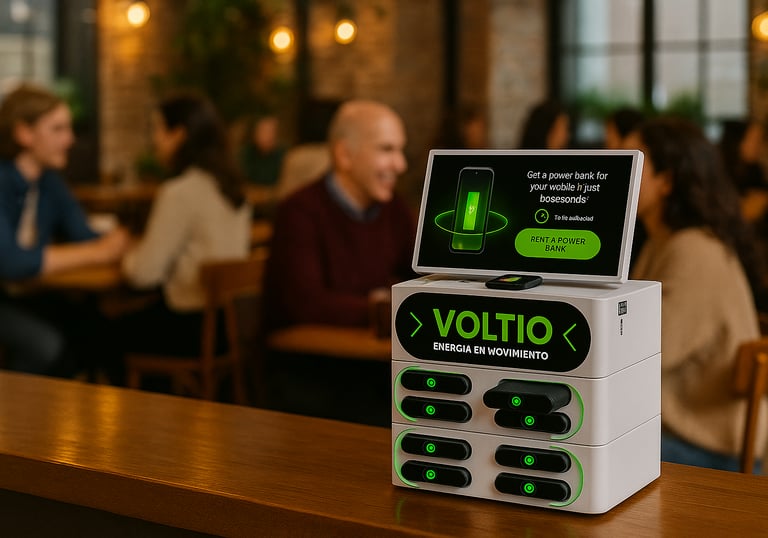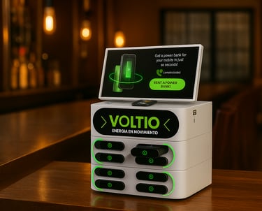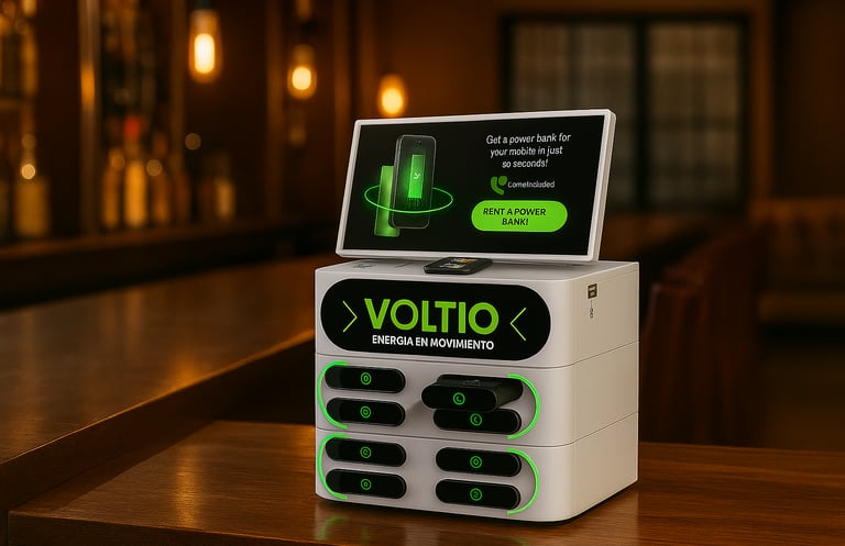 Voltio es una plataforma para compartir baterías externas. Alquila una cuando la necesites, recarga tu dispositivo y devuélvelo fácilmente.
