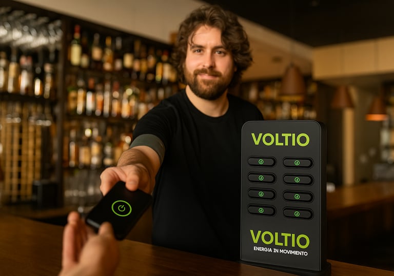 Voltio es un servicio que mantiene el dispositivo de tus clientes siempre cargados. Olvídate que los clientes se vayan porque no tenes enchufes o tener que estar atento al pedido de carga de tus clientes.